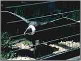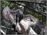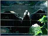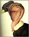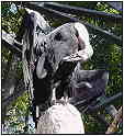 Andean CondorOrder: Falconiformes. Family: Cathartidae. (New World vulture). Scientific Name: Vultur gryphus. Common Names: Andean Condor. Conservation Status: Endangered. Things are starting to look up for this species as it has started doing relatively well both in the wild and in captivity. It was slaughtered mainly due to the worry farmers had that it endangered their stock, though some people were simply feather collectors as the Andean Condor's quills are much valued by harpsichord makers or as cigarette holders. On the other hand, the Andean Condor was always in a better position than its close cousin the California Condor. This is because there are far fewer people living in its geographical range and the farmers tend only to round up cattle once a year. Without care, cattle easily die all year round, providing a constant food source. Andean Condor Chick (Photograph Courtesy of Ralf Schmode Copyright ©2000)Rescue & Recovery: In many parts of its native range the Andean Condor is extremely rare, or has already become extinct. Protection is essential for this great bird, however protective legislation in South America is worth very little and there is no reason to expect it would have any impact at all. Geographical Range: South America from Venezuela (where it was rediscovered in 1977) to Columbia. Predominantly the eternal snows of the Andes. Descends to sea level along the wildest coastlines. Habitat: Coastal cliffs, or the highest and least accessible parts of mountains. Commonly found at altitudes of up to 7,000 metres. Physical Characteristics: Vies with the California Condor for the title of largest bird of prey. They reach a length of 101-116 centimetres and a male may weigh as much as 12 kgs, having a wingspan of three metres wide. Very long-lived with one in captivity attaining the age of approximately 77-years-old. This bird lived outdoors at Moscow Zoo from 1892 to 1964 and was probably already at least five or six years-old at the time it was caught. Adults are dark grey, almost black, with the exception of white markings across the wings. The bare skin on the head and neck is pinkish; the colouration being caused by haemoglobin, the iron-rich compound found in blood cells. Directly below the neck is a collar of white feathers which is narrower in the female. The male has a caruncle (fleshy crest) on the top of head and lobe-shaped wattles appear on the side of the face. Eye colour varies with males having a light brown colouration and females being reddish-brown. Male birds grow larger than females and both sexes are all but voiceless, with their full repertoire consisting of a few wheezes and grunts. In immature birds, the plumage is a uniform brown. Male Andean CondorFood: Carrion. Sometimes attacks and kills wounded animals, but these are already well on their way to death. It is not a fighter and have relatively weak claws, though the beak is very strong enabling the Andean Condor to feed from the toughest carcasses. A careful social hierarchy is observed while the birds feed and it is very rare for serious fights to ensue in the bid to establish dominance. Peruvian birds may migrate to the coast from December to January to feed on dead sea lions. Condors which normally reside near coasts raid the colonies of seabirds, eating both eggs and chicks. An Andean Condor with a fully gorged crop has probably ingested up to 1.4 kilograms of meat. Their main diet is probably made up of native animals like the llama, seabirds and fur seals, now coupled with the spoils of ranching in the form of horses and cattle. Reproduction: Without human intervention, this bird is a slow starter, not beginning to breed until they are six or seven years old. When it comes to a food supply these birds lead a fairly meagre existence and very few pairs breed in these conditions. Approximately every five years storms come about as a result of El Niño; this creates devastation which substantially increases the food supply of these birds, and causes the numbers of breeding pairs to raise substantially. A year after the 1982-83 El Niño the cliffs and ledges were packed with year-old birds. In between the storms few are to be found. This leaves the Andean Condor very susceptible if many years pass without any sign of big storms to kill wildlife and farm animals. Condor In Flight (Photograph Courtesy of Cliff Buckton Copyright ©2000)Andean Condors are highly secretive while nesting, but nest at heights ranging from sea level to over 4,000 metres. They lay a solitary white egg in on the bare ground of a rock cavity, often exposed to wind and bad weather. Incubation time is 54-58 days (shared incubation, with the male relieving the female for a few hours each day). The young are covered with a pale grey down, later succeeded by a slightly darker grey. Male chicks already have the fleshy crest on their head at birth. Birds start to fly at around six months of age. Chicks continue to be tended until they reach their second year and the long period of care means that in the wild a pair only produce an average of one egg every two years. Andean Condors in captivity are encouraged to multiply by removing the eggs. Chicks are then hand-raised and the birds may nest several times in a season. Other: Many South American states have adopted this bird as a symbol of liberty. Thumbnails (Click For Full-Size Image):