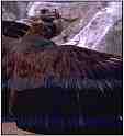 Cinereous Vulture (Photograph Courtesy of Linda Schueller Copyright ©2000)Reproduction: Like many other raptors this birds lives in a permanent state of monogamy and they may pair up long before reaching sexual maturity in their fifth or sixth year. Builds a large and rather crude nest in a tree, with the large branches being collected by the male and the assembly being done by the female. She then lays a single egg (white with brownish spots) which is incubated by both parents for 52-55 days. Parents jointly feed the young with regurgitated food. During the first 30-60 days the plumage grows in and after 100 days the youngster is ready to take its first flight. Young birds remain in the nest for a further six weeks after this time. Thumbnails (Click For Full-Size Image):
