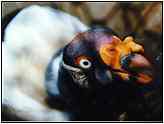 KingOrder: Falconiformes. Family: Cathartidae. (New World vulture). Scientific Name: Sarcoramphus papa. (Historic name: Sarcorhamphus papa. Translation: 'Father of the Coffin') Common Names: King Vulture or King Jan Kro. Conservation Status: Rare. Although King Vultures are not yet listed as endangered or threatened, there has been a substantial decrease in wild populations largely due to habitat destruction. King Vulture (Photograph Courtesy of Lisa Purcell Copyright ©2000)Rescue & Recovery: To offset the reduction in wild numbers a captive breeding programme is in operation, with the studbook for this being located at the Sequoia Park Zoo. Details recorded include dates hatched, parentage, locations, wild or captive born and dates of death; the earliest entry dates back to 1900. King Vultures are a protected bird in Belize. Geographical Range: Mexico and Venezuela, through to Argentina, where they are sometimes seen soaring in flocks over rain forest areas. King Vulture (Copyright ©2000)Habitat: Wooded lowlands and tropical rain forests. Physical