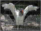work is usually required to sex birds. King Vulture (Photograph Courtesy of Holly Dean Morris Copyright ©2000)Food: The King Vulture has a particularly large strong beak which it uses to tear apart carrion. As this is difficult to spot in dense bush the King Vulture relies heavily on its sense of smell to find food. It is often one of the first birds on the scene which is able to tear through a strong hide and commence eating. Diet seems to consist mostly of carrion though there have been occasional reports of it killing live animals. Stranded fish on river banks are another addition to the menu. There have been reports of the King Vulture killing calves or reptiles, but these are unsupported by solid evidence. In zoos birds of prey like this are fed on mice, mealworms and prepared bird of prey diets. King Vulture (Photograph Courtesy of Holly Dean Morris Copyright ©2000)Reproduction: In depth studies of this bird have yet to be done as so not much is known about the breeding habits of the King Vulture. In fact, not until November 1998 was this bird successfully photographed nesting in the wild. We know King Vultures nest in trees, often very high up and may also nest in rocky areas, or tree stumps. Normally one egg is produced although pairs have been seen to produce up to three eggs in a season when chicks have been lost. The incubation period 56-58 days with both parents sharing in the task. The chicks are born pure black and remain this colour for the first three years, before turning grey then white at around five to seven years (sexual maturity). King Vultures become sensitive when nesting and any upset may cause the birds to kill the hatchling. During the same period they are highly aggressive and hand-raised birds, having no fear of humans, may be particularly dangerous. Thumbnails (Click For Full-Size Image):