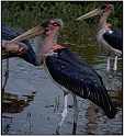 Marabou StorkOrder: Ciconiiformes. Family: Ciconiidae. Scientific Name: Leptoptilos crumeniferus. (Translation: 'Slender wing with throat pouch'). Common Names: Marabou Stork or 'Undertaker Bird'. Conservation Status: Common. Though these birds are uncommon over most of their range, they are prolific enough to be considered a pest in some areas, as they congregate near villages to raid rubbish dumps. Rescue & Recovery: None. Geographical Range: Africa. Habitat: Savannahs, plains and marshes.